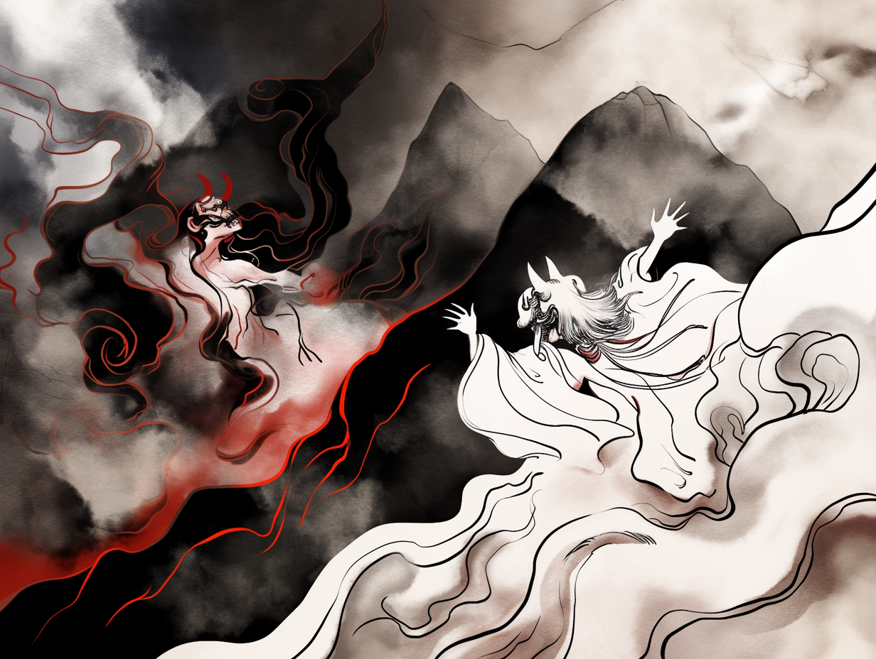 Watch as vibrant brushstrokes breathe life into ancient tales, drawn from traditional Japanese ink painting.
