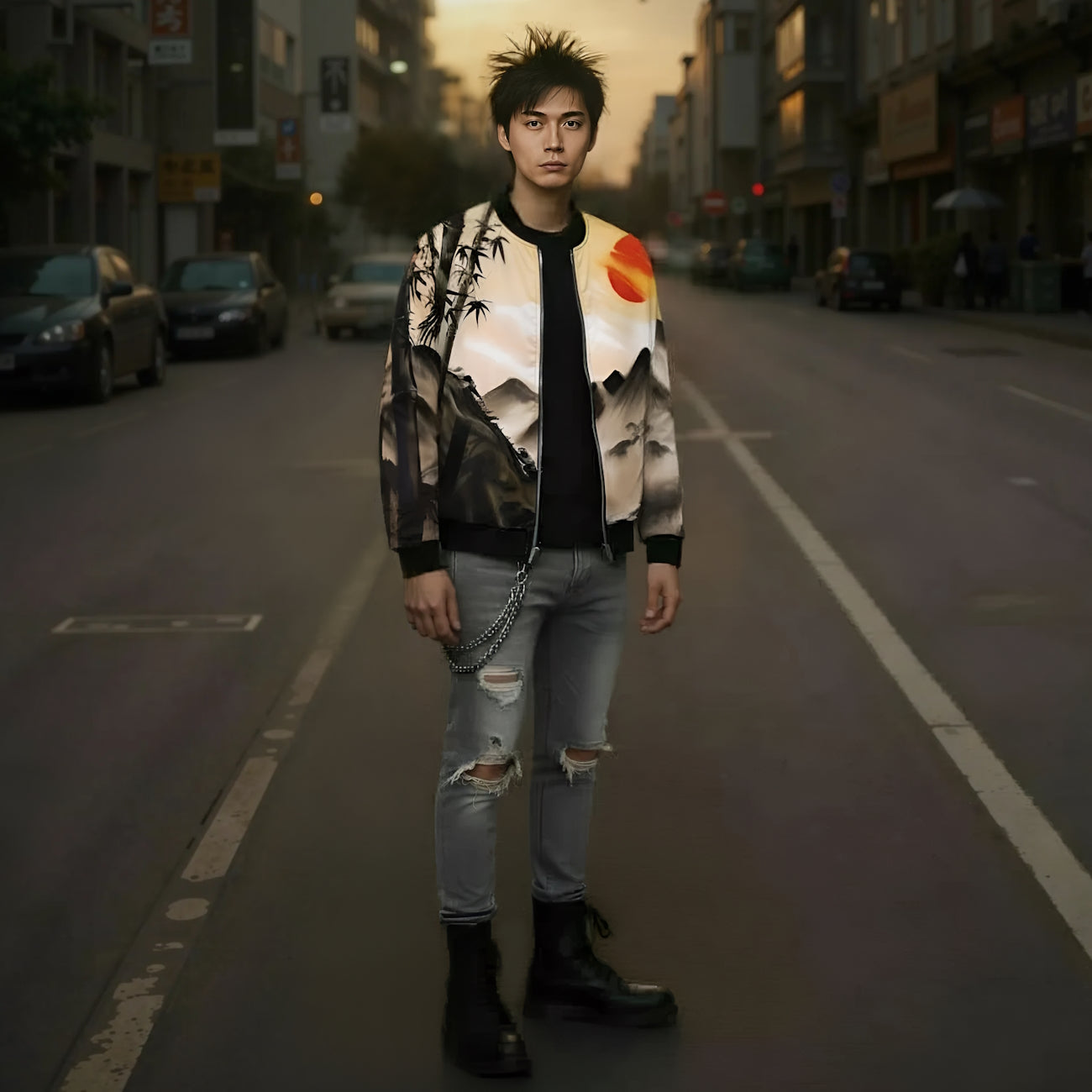 This lightweight jacket channels the myth of the fierce Tiger — the one who watches from the peak as chaos unfolds below. The sun sets slowly behind the mountains while a bloody battle rages at the mountain’s roots. The Tiger watches but doesn’t move. She doesn’t need to.